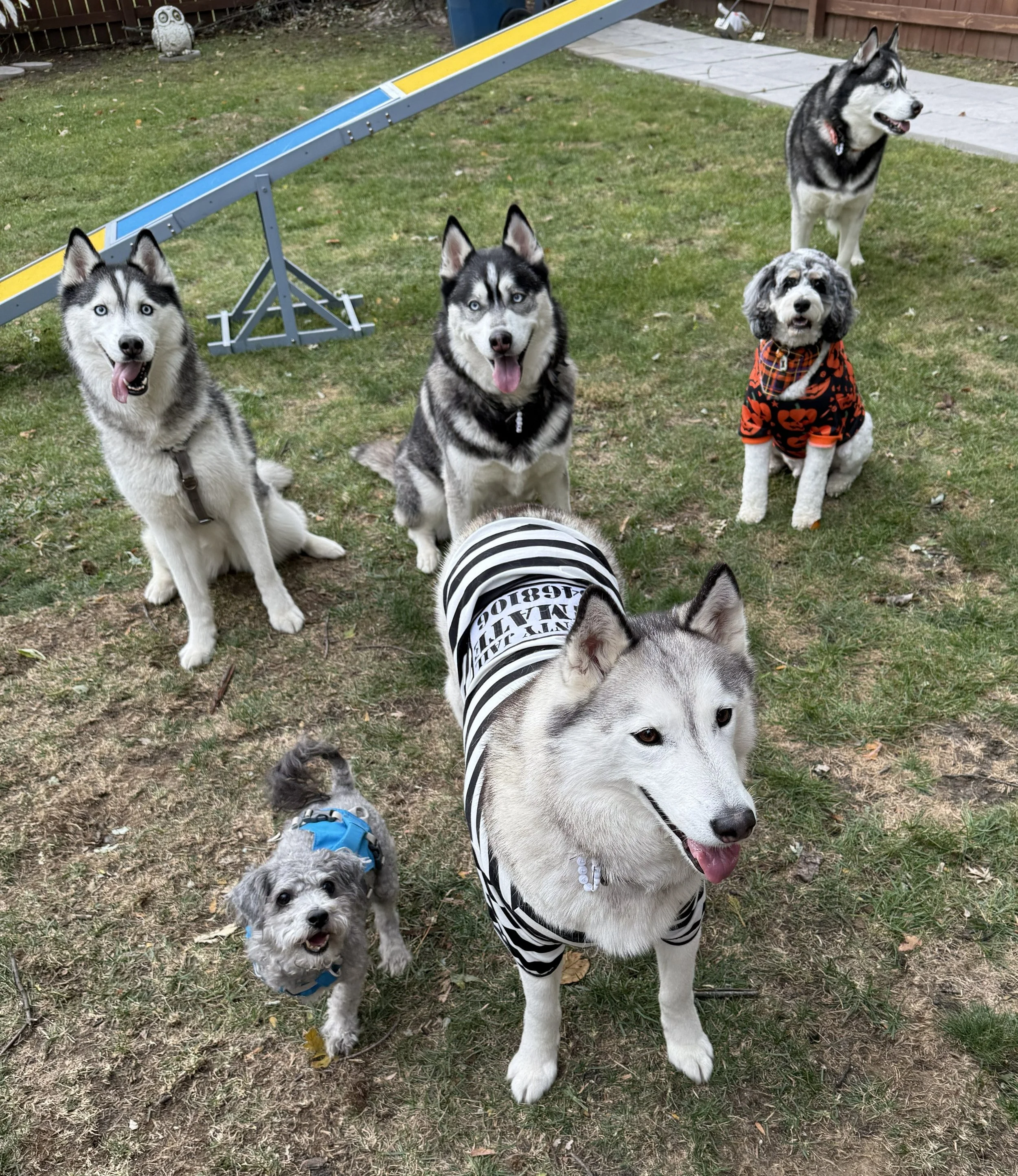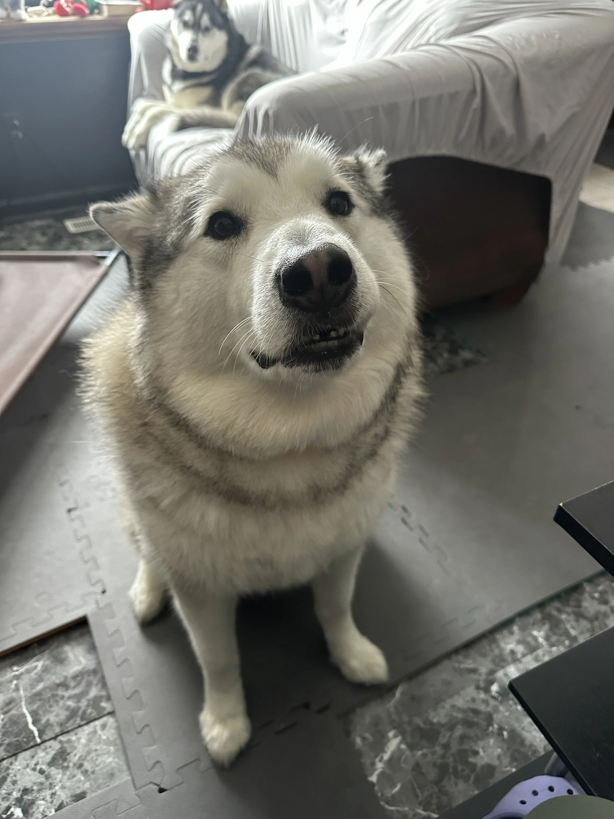 Maji, born March 30, 2019, is very intelligent. He is the first to figure out puzzles. He also follows commands quickly. Maji is fearful of new people, but will follow directions even when afraid.Savi, born March 30, 2019, has always been mischievous. She was the hardest to obedience train. She did recently earn her CGC title. She loves people and other dogs. EVERYONE comments on her sweetness!Alaagi, born March 25, 2020, is my obedience boy. He has been my main demo dog. He loves people and other dogs. He IS your classic husky though, often complaining loudly when told to do something. He earned his CGC title and when he's working he is typically flawless.Thraaki, born March 25, 2020, is my main cuddler. He loves other dogs. I trust Thraaki to figure out how another dog feels comfortable when playing. He is quite fearful of people, especially children. We have worked hard on his fearfulness and have made progress.Halloween 2025